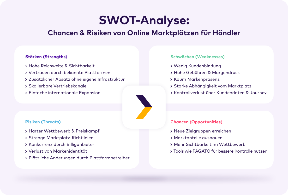Zu den größten Risiken gehören hohe Verkaufsgebühren, starker Preisdruck durch Konkurrenz, wenig Kontrolle über Kundendaten und eingeschränkte Markenpräsenz. Zudem entsteht eine Abhängigkeit vom Marktplatzbetreiber, was zu Umsatzeinbußen bei Änderungen führen kann.