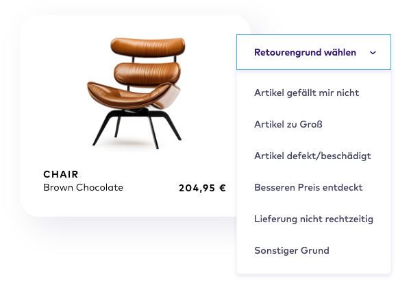 Der Prozess ist vollautomatisiert und benutzerfreundlich. Kunden wählen Artikel für die Retoure aus, geben Gründe an und drucken ihr Label selbst oder erhalten es komplett digital.